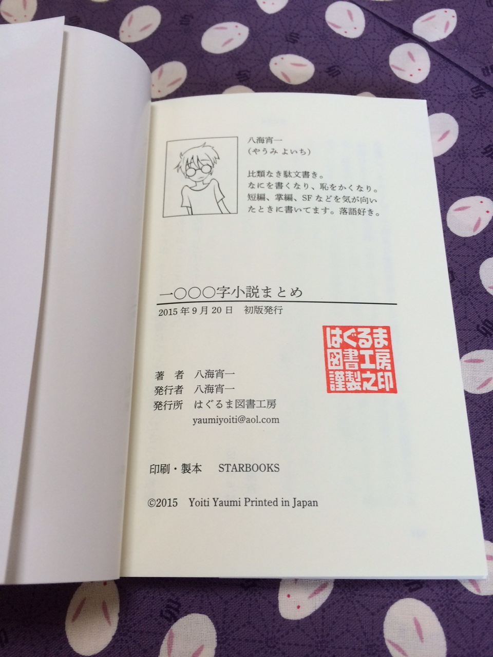 奥付に「はぐるま図書工房謹製之印」を押してみました。